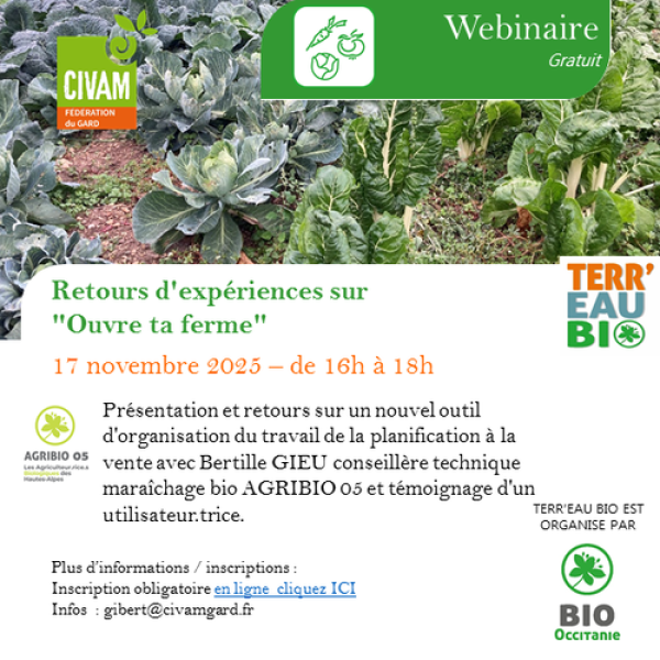 Webinaire : Retours d'expériences sur "Ouvre ta ferme", un nouvel outil d'organisation du travail de la planification à la vente