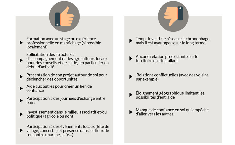 La construction d’un réseau est essentielle notamment pour accéder au foncier, au marché et à d’autres éléments critiques pour la création et la pérennisation d’un projet, comme du matériel ou du soutien moral.